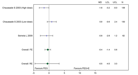 Figura 3: Comparações em pares para PEG e PEG+E da meta-análise de rede.8